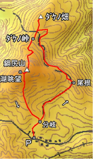 〜岳の畑〜(50分)〜鍋尻山〜(5分)〜山頂展望所 |